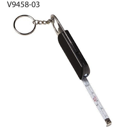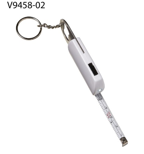 Brelok do kluczy, otwieracz do butelek, lampka 1 LED i miara 1 m.