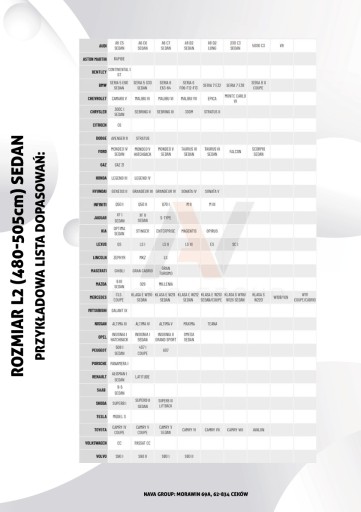 - Szeroka gama rozmiarów która uwzględnia różne rodzaje nadwozia oraz długości auta