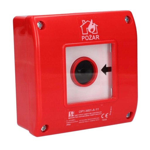 Ręczny ostrzegacz pożarowy OP1 przeznaczony jest do stosowania w pomieszczeniach przemysłowych użytku publicznego. Wykonywany jest w dwóch wersjach: podtynkowej i natynkowej. Każda z wersji oferowana jest w dwóch typach: A i B. OP1 typ A w sytuacji alarmowej wymaga tylko zbicia szybki co powoduje zwolnienie przycisku. W OP1 typ B po zbiciu szybki należy wcisnąć przycisk z samoczynnym powrotem. W każdej obudowie mogą być zainstalowane trzy łączniki SP22-10 (zwierny) lub SP22-01 (rozwierny). Dodatkowo w każdym wykonaniu może być zamontowana dioda, którą można podłączyć do łącznika lub bezpośrednio do instalacji alarmowej danego obiektu. Uruchomienie i wysłanie sygnału następuje przez zbicie szybki (typ A) lub po zbiciu szybki i wciśnięciu przycisku z samoczynnym powrotem (typ B). Kasowanie stanu alarmowego następuje przez wymianę elementu kruchego (szybki - symbol zamówienia PPOŻ-5701). Wyrób jest zgodny z normą PN-EN 54-11. Świadectwo dopuszczenia Nr 2266/2014. Certyfikat zgodności EC Nr 1438/CPD/0130.