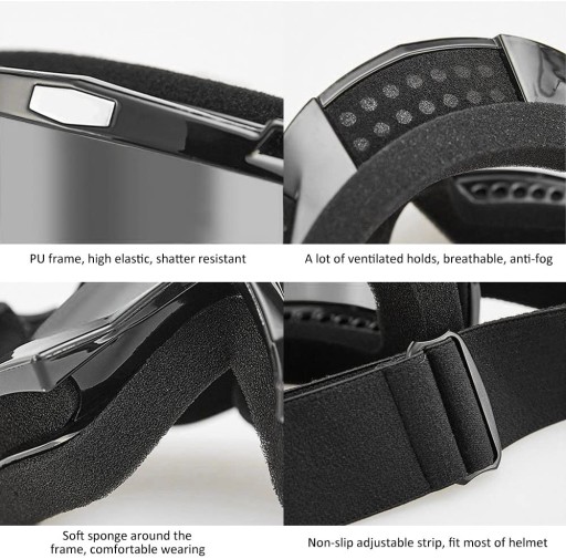 Wysokiej jakości materiał UP Resin sprawia, że okulary przeciwsłoneczne dirt bike mają doskonałą wytrzymałość i sprężystość. Soczewki PC są odporne na zarysowania, wiatroszczelne, pyłoszczelne, nietłukące i 100% ochrony przed promieniowaniem UV.