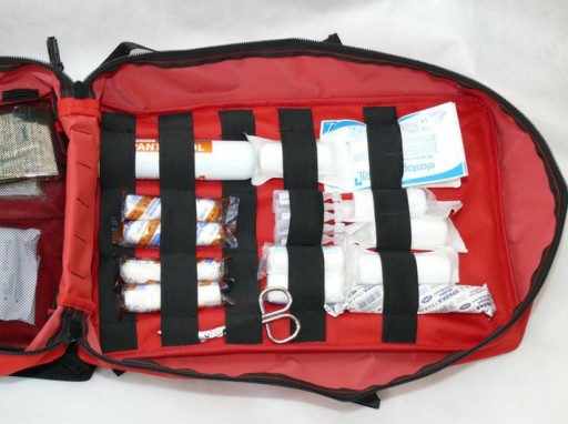 - Wewnątrz komory głównej 5 rzędów gum do zaczepienia ampułek lub opatrunków, oraz 4 kieszonki z siatki,