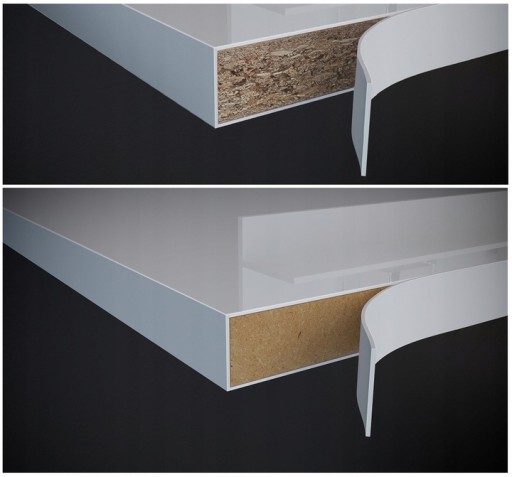 - Obrzeża korpusu mebli są oklejone okleiną ABS, która należy do jakościowo najlepszych obrzeży z materiałów termoplastycznych - to właśnie one są najbardziej narażone na uszkodzenia i to one często decydują o finalnym efekcie wizualnym. Pełnią więc podwójną rolę – zarówno dekoracyjną, jak też funkcjonalną – przedłużają żywotność mebla.