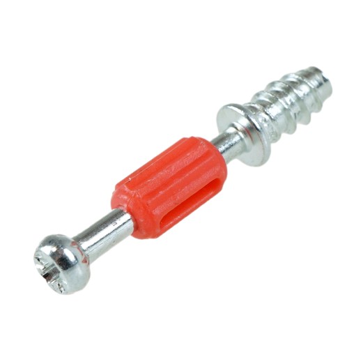 Zaczep do mimośrodu typ SK, stalowy z gwintem euro 11 mm, długość robocza 28 mm, oraz tworzywem obrotowym ułatwiającym wprowadzanie zaczepu do otworu w płycie lub drewnie. Trzpień posiada gwint przeznaczony bezpośredni do wkręcenia w drewno - jest on minimalnie stożkowy, ułatwiający wprowadzenie zaczepu prosto. Pod łbem jest specjalne nacięcie uniemożliwiające obracanie się zastosowanego tam mimośrodu. Zaczep przeznaczony dla zakładów produkcyjnych oraz przemysłu. Zapraszamy do zapoznania się z pełną ofertą zaczepów oraz mimośrodów.