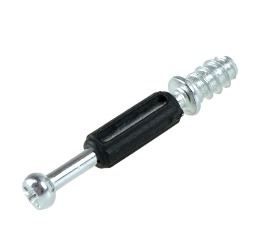 Zaczep do mimośrodu typ SK, stalowy z gwintem euro 11 mm, długość robocza 34 mm, oraz tworzywem obrotowym ułatwiającym wprowadzanie zaczepu do otworu w płycie lub drewnie. Trzpień posiada gwint przeznaczony bezpośredni do wkręcenia w drewno - jest on minimalnie stożkowy, ułatwiający wprowadzenie zaczepu prosto. Pod łbem jest specjalne nacięcie uniemożliwiające obracanie się zastosowanego tam mimośrodu. Zaczep przeznaczony dla zakładów produkcyjnych oraz przemysłu. Zapraszamy do zapoznania się z pełną ofertą zaczepów oraz mimośrodów.