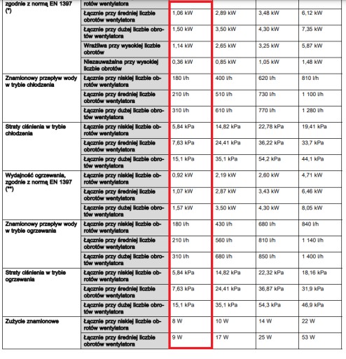 Chłodzenie pasywne moc dla 15/18 °C (27 °C/19 °C, 15 °C/ 18 °C): 0,84 kW