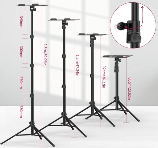 - Płynnie regulowana wysokość statywu w zakresie od 60 do 150 cm