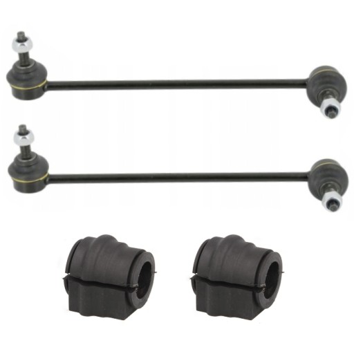 NOWY KOMPLET ŁĄCZNIK STABILIZATORA PRZEDNI PRZÓD LEWY + PRAWY +2x GUMA