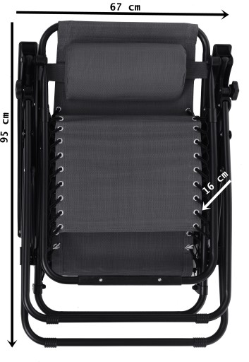 Po prostu usiądź wygodnie, odpręż ciało i umysł! Leżak ogrodowy to doskonały wybór do wypoczynku na plaży albo w zaciszu własnego ogrodu. Wygodne podparcie dla nóg i głowy gwarantuje przyjemny relaks.Leżak oferuje płynną regulację pozycji, dzięki czemu ustawisz go tak komfortowo, jak lubisz. Dla większej wygody można dostosować pozycję zagłówka lub całkiem go zdemontować. Stelaż z profili stalowych jest solidny i wytrzymały. Mechanizm rozkładania działa lekko i intuicyjnie. Siedzisko uszyto z mocnej tkaniny tekstylina, dzięki czemu jest trwałe i odporne na działanie warunków atmosferycznych. Po złożeniu leżak zajmuje mało miejsca, co w połączeniu z jego niewielką wagą, czyni go niezwykle łatwym w transporcie i przechowywania.