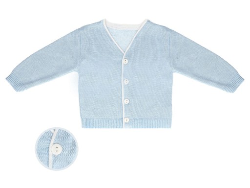 Piękny, klasyczny bawełniany sweterek, wykonany z bardzo dobrej jakości dzianiny, idealny na Chrzest i inne okazje.