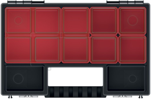 Małej wielkości organizer z serii NORP firmy Kistenberg wyposażony w wyjmowane pojemniki w trzech rozmiarach to sprzęt, który znajdzie zróżnicowane zastosowanie. Jego walory docenią profesjonaliści posiadający dużą ilość podzespołów w różnych rozmiarach, każdy majsterkowicz pomieści tam śrubki i wkręty w wielu wariantach, pani domu czy krawcowa bez trudu ukryje tam guziki, agrafki, szpilki czy igły. Dzięki wykorzystaniu organizera i jego pojemniczków odnalezienie różnorodnych elementów w nim umieszczonych będzie zdecydowanie łatwiejsze niż w przypadku zastosowania organizera z jedną komorą. Przezroczysta pokrywa umożliwia szybkie zorientowanie się w zawartości bez konieczności jej otwierania. Wysoka jakość materiału oraz wykonania zapewnią długie użytkowanie i zadowolenie z produktu.