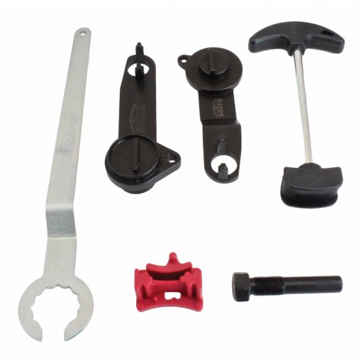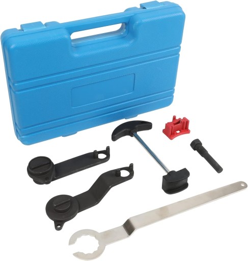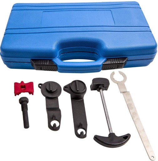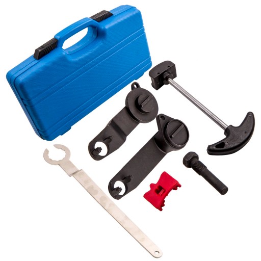 Zestaw zawiera m.in. blokadę wału korbowego, koła zębatego rozrządu, napinacz koła pasowego oraz trzpień do wału.