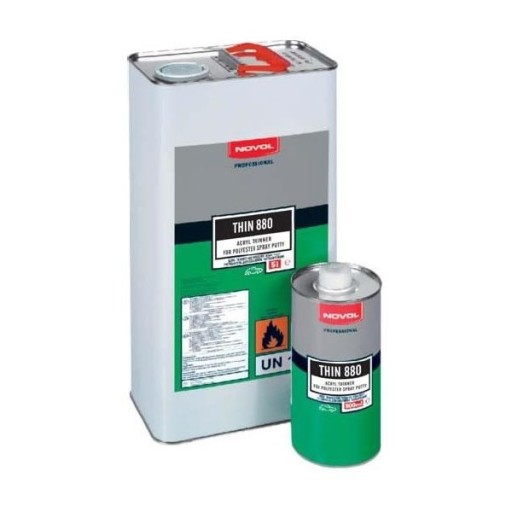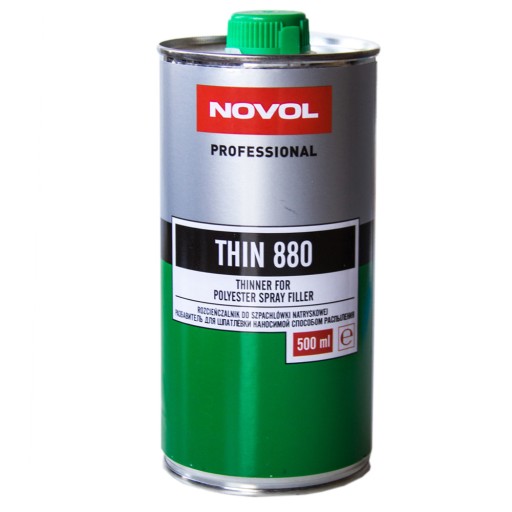 Rozcieńczalnik THIN 880 NOVOL jest rozcieńczalnikiem przeznaczony do szpachlówki natryskowej w produktach branży samochodowej, ale również jego skład chemiczny decyduje o tym, że doskonale nadaje się jako preparat do czyszczenia narzędzi oraz powierzchni z nieutwardzonych klejów i szpachli na bazie żywic poliestrowych.