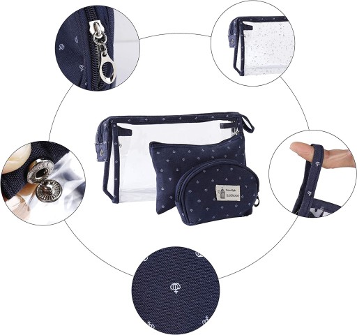 Opakowanie zawiera trzy kosmetyczki o różnych wielkościach, które sprawdza się doskonale podczas podróży.