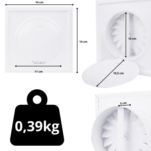 ✅ Kratka wentylacyjna z wiatrakiem osłoną / klapką do regulacji.