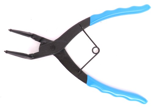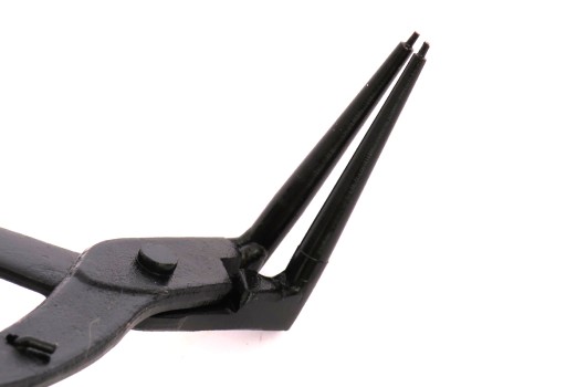 Szczypce wewnętrzne wygięte do zakładania i wyjmowania pierścieni zabezpieczających Segera z zacisków hamulcowych samochodów marek VW, Audi, Mercedes i wielu innych.