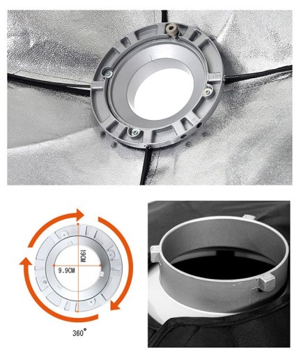 Takie rozwiązanie pozwala także na dużą oszczędność miejsca - softbox składa się na płasko, jest bardzo mobilny i wygodny w transporcie. Softbox posiada metalowy adapter na mocowanie bowens, pozwalający na pewny i stabilny montaż na większości lamp dostępnych na rynku. (m.in. do lamp BOWENS, do lamp Fighter; FOTOKING, STEINER, Vistar, Quantuum; POWERLUX,lamp serii K: CY200K, CY300K, CY400K, CY500K, CY600K).