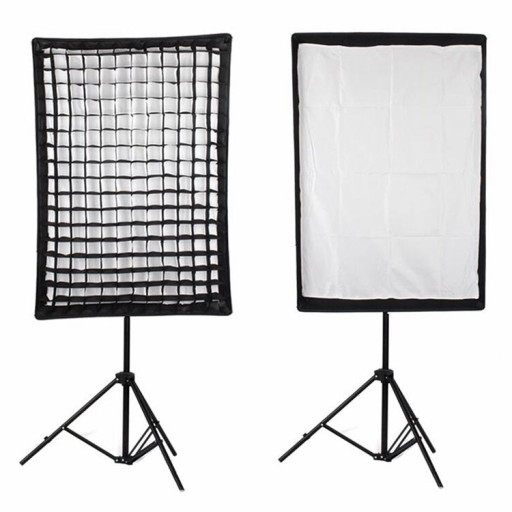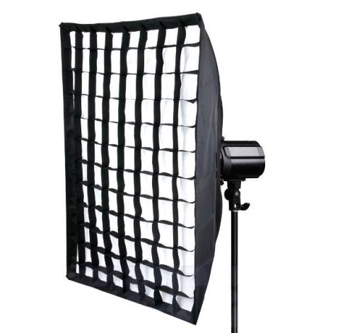Zdjęcia pełnią funkcję poglądową i mogą przedstawiać softbox o innych wymiarach i innej gęstości oczek w siatce plastra miodu. Przedmiotem oferty jest produkt o parametrach podanych w pierwszej linii opisu. Statyw oraz lampa błyskowa nie są częścią zestawu.