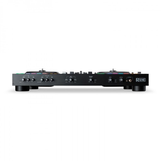 Rane One dwukanałowy kontroler oprogramowania Serato DJ ze zmotoryzowanym kołami JOG oraz kartą muzyczną 2 x USB. Kontroler Rane One posiada 7" zmotoryzowan koła JOG z oraz 25 centymetrowe potencjometry Pitch oraz wstęgowy kontroler dotykowy. Dolna część gramofonów to 8 performace padów obsługujacych loopy , cue oraz efekty przypisane do padów Sekcja miksera to dwukanałowy fizyczny Mikser Audio typu battle scratch ze specjalnymi kontrolerami łopatkowymi oraz crossfader Mag Four X3 z wielopoziomową regulacją krzywej/revers dla wszystkich potencjometrów. Kontroler oferuje dwa wejscia mikrofonowe XL Combo, dwa wejscia gramofonowe/line umozliwiające scratch z gramofonów lub podłączenie kolejnych żródeł dzwięku, wyjścia master XLR, master RCA Booth także na złączach XLR.