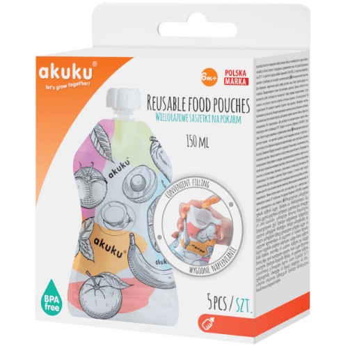 Wielorazowe saszetki na pokarm umożliwią Ci podawanie dziecku zdrowych deserków, przecierów, musów i innych przekąsek przygotowanych w Twojej kuchni.