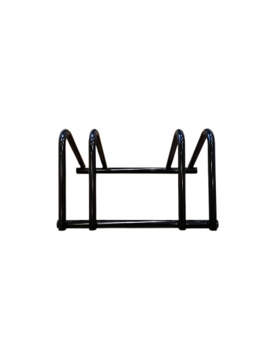 Spawany powlekany farbą proszkową stojak na 2 rowery, wykonany z rur górnych o średnicy 25 mm i rur podstawy o średnicy 28 mm.