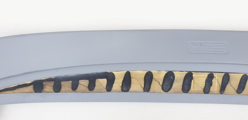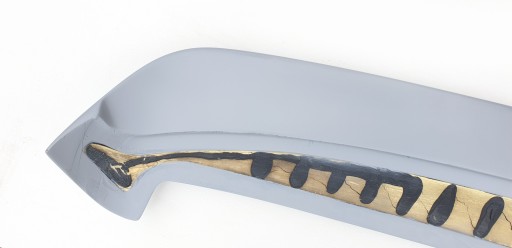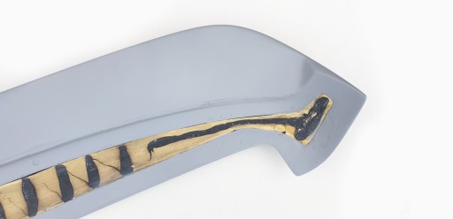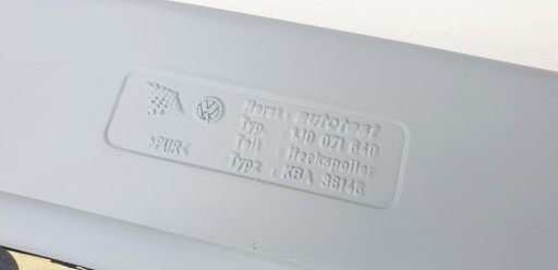 Spoiler ogólnie ładny. Do lakierownia, jest w podkładzie. Oczywiście jakieś ryski, małe otarcia się gdzieś tam mogą trafić. W prawej górnej części troszkę za słabo zapodkładowany, wypadałoby psikąć jeszcze jedną, grubszą warstwę - lakiernik spokojnie sobie z tym poradzi. Spoiler oryginalny, materiał PUR.