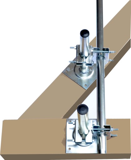 Typ mocowania dzięki specjalnym, krzyżowym uchwytom w łatwy sposób umożliwia wypionowanie masztu na poddaszu.