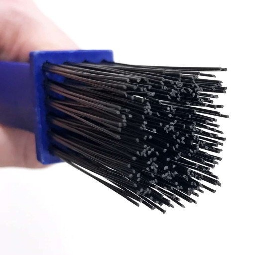 Szczotka do czyszczenia łańcucha np. motocyklowego, rowerowego. Umożliwia czyszczenie bez rozpinania łańcucha. Za pomocą szczotki wyczyścisz również pozostałe metalowe elementy (zębatki, śruby itd.).