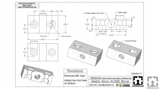 Blok mocujący jest doskonałym wyborem dla projektów, które wymagają ruchu liniowego napędzanego śrubą trapezową M8.