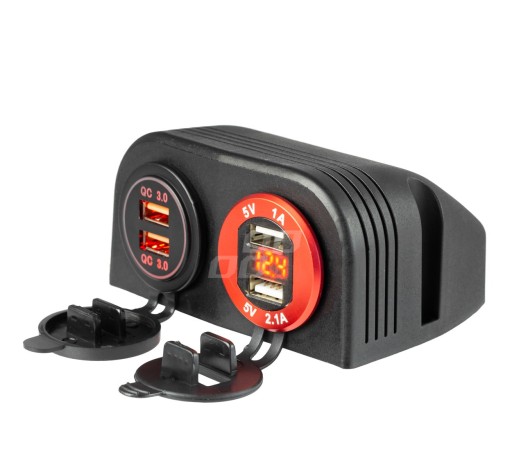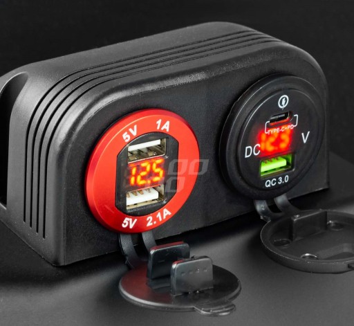 Obudowa do montażu na powierzchniowego z 2 otworami 30mm przeznaczonym pod dodatkowe urządzenia. Możliwe jest zamontowanie woltomierza okrągłego, ładowarek USB lub gniazda zapalniczki.