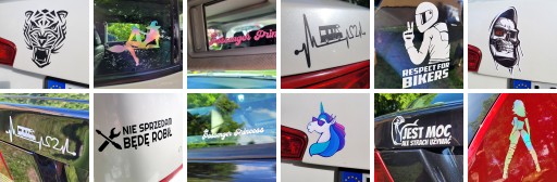 - Naklejki wycinane techniką ploterową - zostaje sama grafika - nie posiadają żadnego tła.