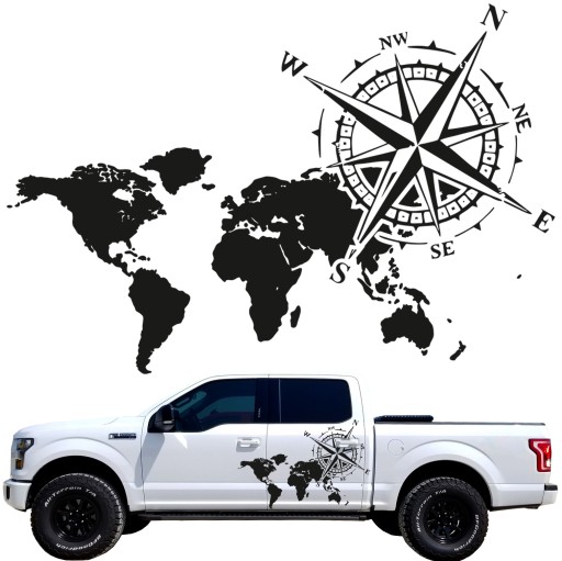2 АВТОМОБИЛЬНЫЕ НАКЛЕЙКИ Карта мира «Роза ветров», 83x58