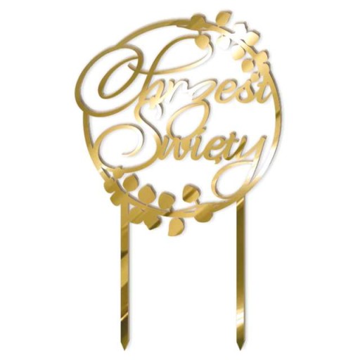 Nowoczesna a zarazem elegancka w swej prostocie - dekoracja na tort. Wykonany z akrylu topper ozdobiony listkami, w kolorystyce złotego lustra, ze zwykłego tortu stworzy małe arcydzieło idealne na przyjęcie z okazji Chrztu św. Wystarczy wbić w górną część tortu i gotowe!