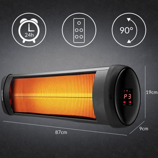 Nowoczesny promiennik o mocy 2500W firmy Monzana® pozwala skutecznie i szybko ogrzać zadaszoną powierzchnię zewnętrzną bez konieczności wstępnego podgrzewania.