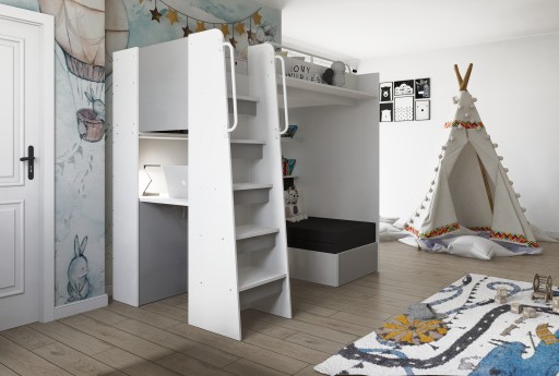 Nowoczesna antresola JSM7 łączy wszystkie ważne cechy brane pod uwagę podczas projektowania pokoju dla dziecka tj.