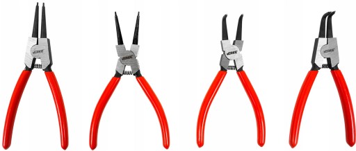 Przydatny w każdym domu, warsztacie i stanowisku pracy! Kompletny zestaw zapełni Ci pełną możliwość zakładania i zdejmowania zacisków, również znanych jako pierścieni Segera. W zestawie znajdują się 2 pary szczypiec zagiętych i prostych - umożliwia to dostosowanie narzędzia do dostępnego miejsca pracy. Każdy rodzaj szczypiec dzieli się również na narzędzie rozciągające i zaciskające.
