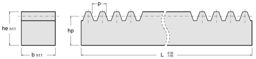 Зубчатая рейка М1,5 17х17 L=1000мм Модуль 1,5
