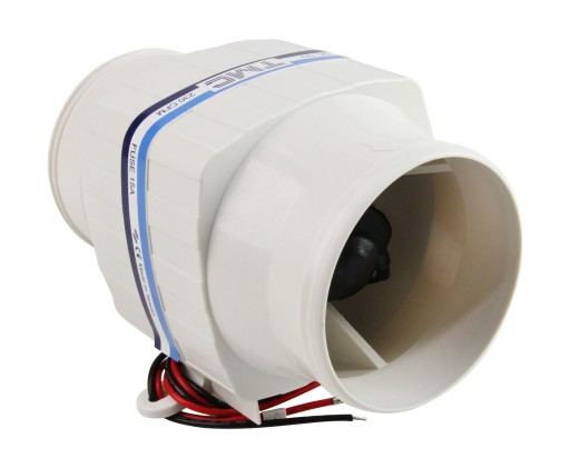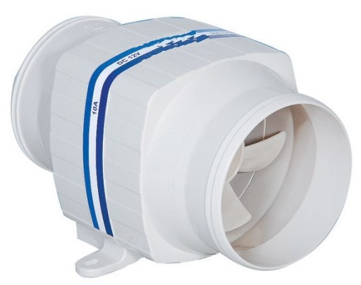 Dmuchawy typu in-line zapewniają wentylację zęz, przedziałów silnika, kuchni i głowic. Znajduje również zastosowanie do przewietrzanie jachtu lub kampera