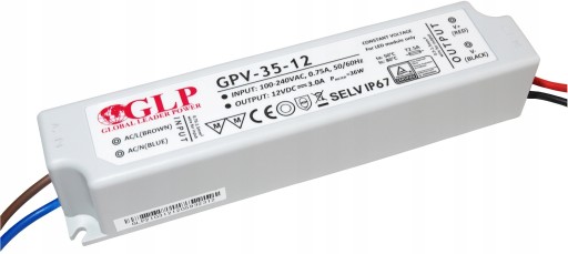 БЛОК ПИТАНИЯ ГЕРМЕТИЧНЫЙ 12В 36ВТ 3А ДЛЯ ТРАНСФОРМАТОРА СВЕТОДИОДНОЙ ЛЕНТЫ GLP GPV-35-12