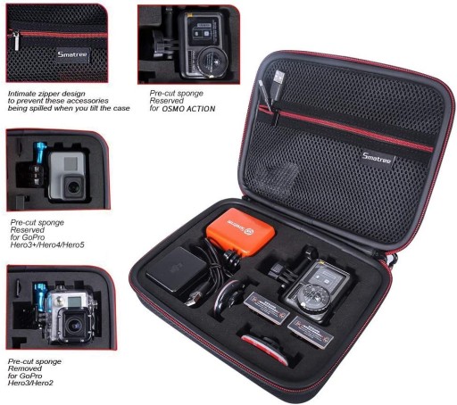 - Smacase G160 został zaprojektowany z eleganckim wnętrzem zewnętrznym i doskonałą wstępnie wyciętą piankową wyściółką, idealnie pasuje do kamery Gopro Hero 2018/GoPro Hero 6/5/4/3+/3/2 i akcesoriów niezbędnych i utrzymuje je dobrze zorganizowane i bezpieczne.