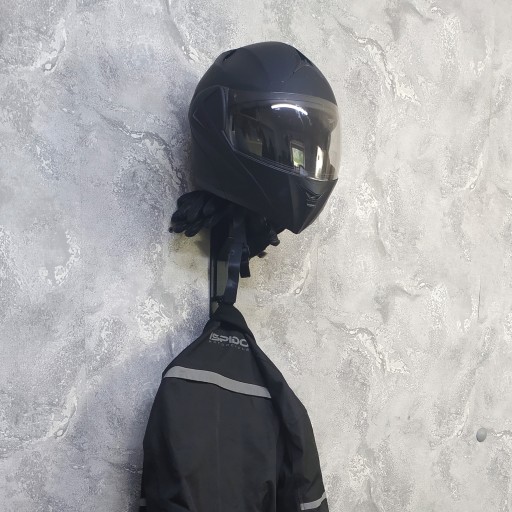 Wieszak na kask i kompletny strój motocyklowy