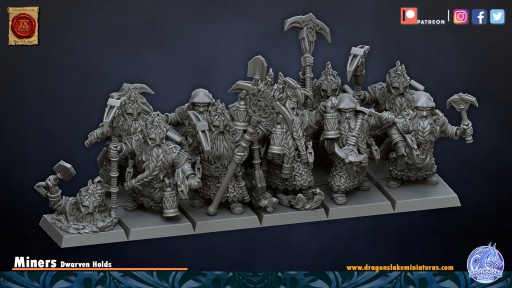 Przedmiotem oferty jest zestaw pięciu modeli Miners od DL Miniatures, wydrukowany na drukarce 3D w technologii SLA.