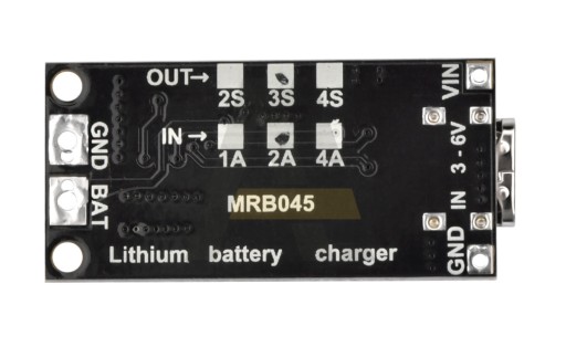 Moduł przeznaczony do ładowania pakietu ogniw 3S przez USB z odpowiednim napięciem maksymalnym 12,6V.
