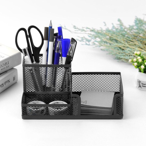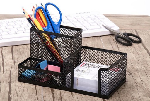 - przybornik na biurko z metalowej siateczki powlekanej lakierem