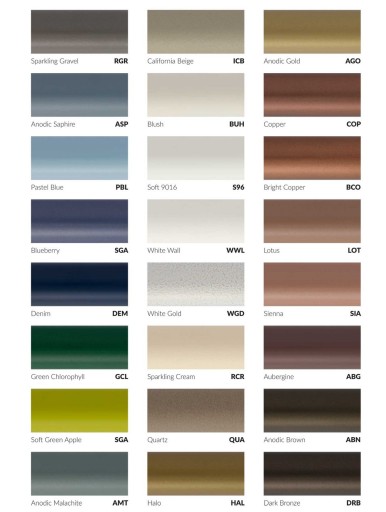 - kolor - wybrany z palety kolorów RAL lub specjalnych