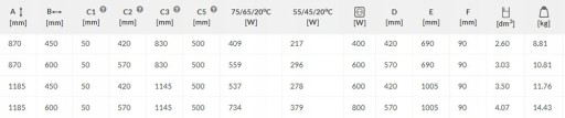 Dokładne wymiary grzejnika , parametry oraz dostępne pozostałe wymiary grzejników w tabeli poniżej - do kupienia na innych naszych aukcjach