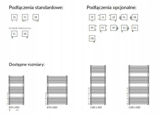 Możliwe wybranie jest w tej cenie innego rodzaju podłączenia tego grzejnika - rodzaje podłączeń pokazane poniżej