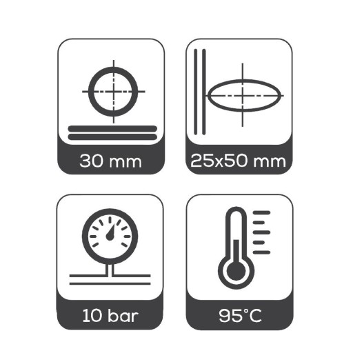 - podłączenie od dołu z rozstawem 50 mm (zasilanie dolne centralne, prawe lub lewe)