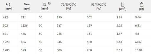 Grzejnik dostępny też w innych rozmiarach na innych naszych aukcjach - poniżej tabela z danymi technicznymi