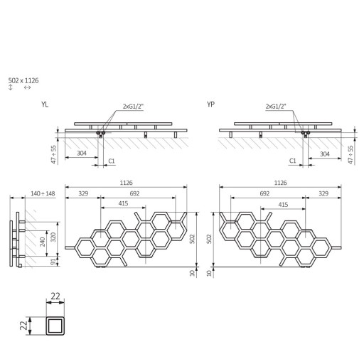 Przedmiotem tej aukcji jest grzejnik HEX 50,2 x 112,6 cm z podłączeniem dolnym zintegrowanym lewym - możliwe też podłączenie prawe - proszę zaznaczyć na zamówieniu