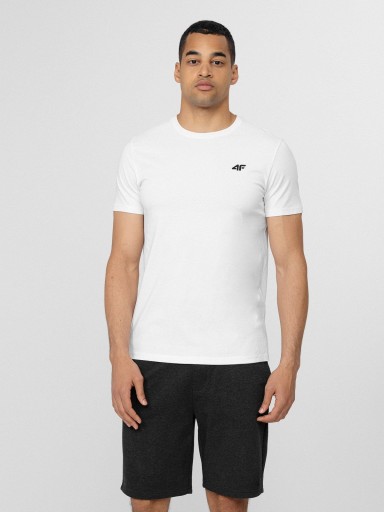 Biały męski T-shirt marki 4F z małym logiem z przodu i z tyłu.